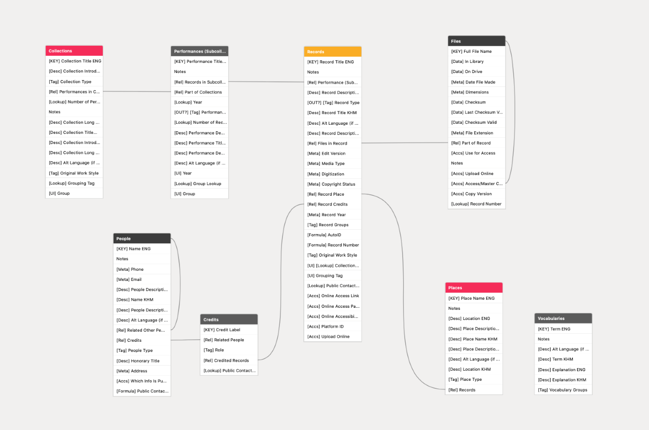 - Screenshot of Airtable taxonomy showing major entities, interrelations, and properties.